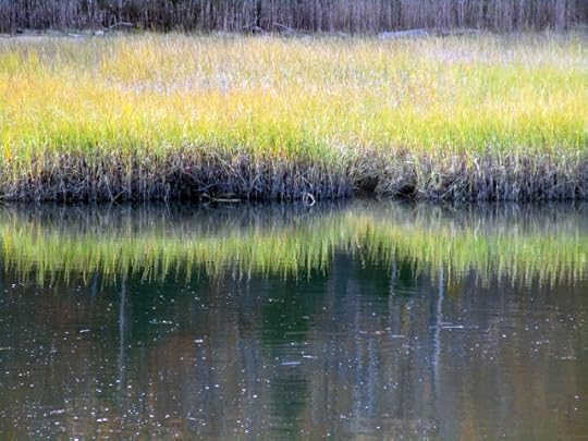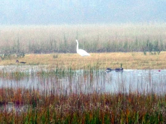 A salt marsh by the shore. Impressions of a Great Egret and a couple of Mallards on an estuarial stream called Furnace Brook, as fog swirled through an afternoon disguised as some place else.