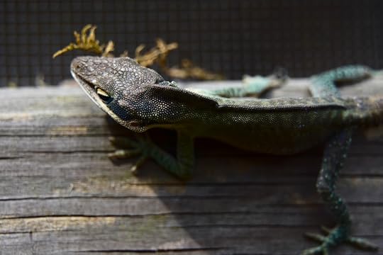 Anoles are one of the more common lizards in the American south. We have them on our porch. This is the dominant male. He’s got one eye on me, but is really focused on another male who was interested in this high status site.