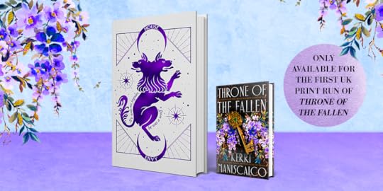 What a day! I am finishing up my latest round of edits for THRONE OF THE FALLEN and two fun bits of news dropped. First! Hodderscape revealed the UK first print run secret cover design, and it’s the House Envy’s sigil in a gorgeous purple foil! It’s also got a quote from THRONE on it. (Just like the KINGDOM OF THE FEARED HOUSE WRATH secret cover design from last year.)