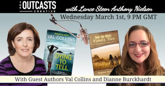 Did you catch my interview on The Outcasts Creative YouTube Channel March 1st on their Industry Interview webshow? If not, you can still go and watch the recorded show on their channel. Host, Lance Steen Anthony Nielsen, interviewed me and bestselling, psychological thriller author, Val Collins. You might remember Val was a guest on my own podcast, Book Banter with Dianne Burckhardt, last week. You can still listen to her interview with me, Episode 54, at ,BookBanter.Buzzsprout.com (,HERE to watch this show.