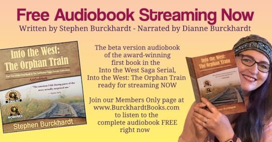 Be sure to check out our ,Book Banter with Dianne Burckhardt (,Members Only (FREE beta version audiobook for the award-winning first installment of the Into the West Saga Serial, Into the West: The Orphan Train. Membership is FREE, quit anytime, no strings attached ... ever!