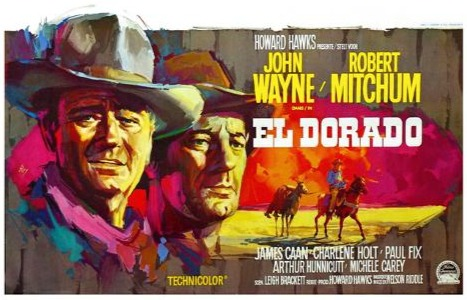 El Dorado was released in 1966. It is an American western produced and directed by Howard Hawks. The movie is said to be loosely based on a novel by Harry Brown titled The Stars in Their Courses. The movie stars John Wayne and Robert Mitchum with a supporting cast that includes other well known actors including James Caan, Charlene Holt, Ed Asner, Paul Fix, Christopher George, Arthur Hunnicutt, and Michele Carey.
