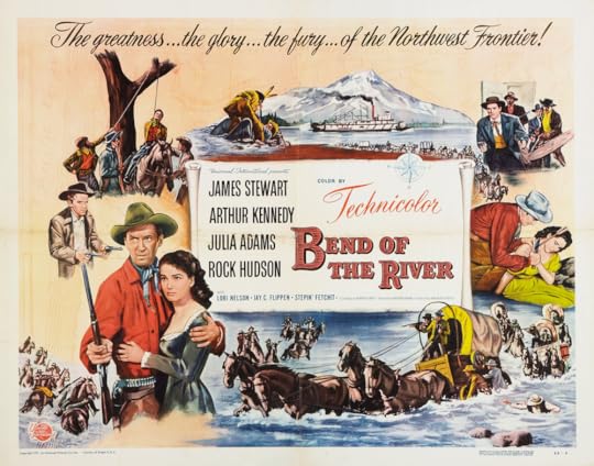 Bend of the River was released in 1952 by Universal Pictures. It is an American western that was directed by Anthony Mann and stars James Stewart, Rock Hudson, Julie Adams, and Arthur Kennedy. The movie is based on the novel Bend of the Snake by Bill Gulick which was published in 1950. This was the second western project for Anthony Mann and James Stewart. The first being the classic Winchester '73, but honestly if you tell me you want me to watch a western with Jimmy Stewart, that is really all you have to say and I'm there.
