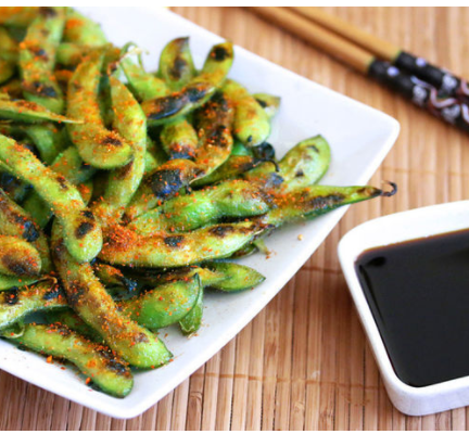I wanted to come up with an easy themed movie snack that would be surprising and have a bit of a Japanese twist, just like the movie. I think ,,Tablespoon.com's, Spicy Grilled Edamame Snack (