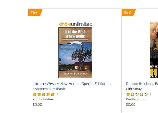 I wonder if it would have gone higher if I had been able to keep posting in the groups, but to be honest, I don't care. Because not only did I finally crack the top 100, I managed to get into the top 50. Not bad for a brain damaged person, who struggles to call her husband and dog by their correctrect name! The book topped out in the 41st position. I haven't been this happy since I was getting ready for my wedding. Now, I need to gear up for the next promotion. That oe will coincide with the release of part three, Into the West: Sharon Springs, coming in March. Keep watching my social media for more announcements. Time to head to bed. I'm falling asleep writing this. I will write more tomorrow after I've had some sleep. Goodnight Posse,Stephen Burckhardt, Bestselling Western Author.