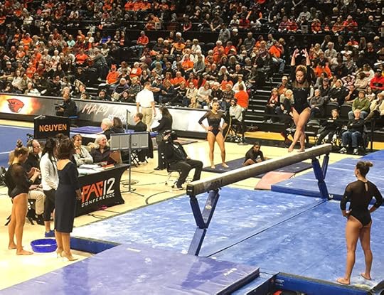 Yesterday I went to my second ever NCAA gymnastics meet at Oregon State. My husband is a prince about going down to Corvallis with me. He’s watched enough that he gets the basics. My favorite teams are generally the ones I can see with my cable package. It used to be limited.