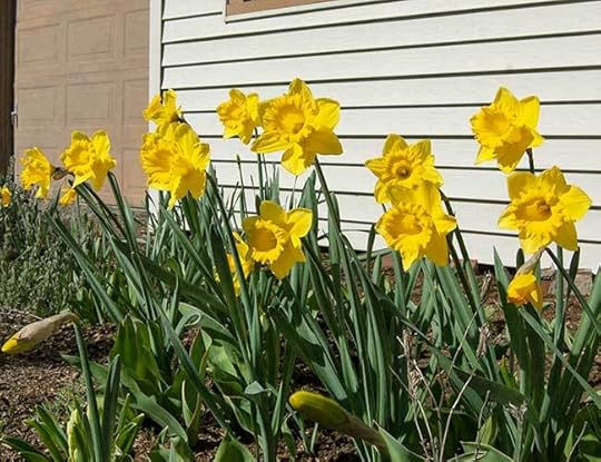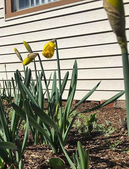 Daffodils are here. These are in the front of the house. More are starting to come in out back.