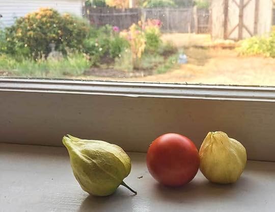 I went out this evening and took a bunch of garden photos and my camera card died. Here’s a tomato and a couple of tomatillos, both from volunteers. More photos over the weekend.