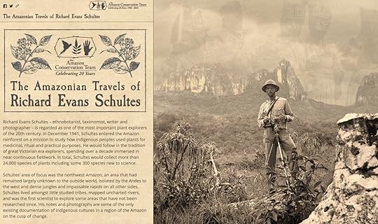 I've known about Richard Evans Schultes for a very long time. My wife heard him lecture in 1973. And quite a while ago I read something by his student Wade Davis. But since Pollan's new book How to Change Your Mind came out I've revisited some of those long ago interests. I've just read The Lost Amazon (2nd edition) by Wade Davis which is a beautifully illustrated and fairly short version of his longer book One River. Don't miss these books! Schultes was the original Indiana Jones - and his biography is jaw-dropping. I can't recommend either of these enough. And then we discover the The Amazon Conservation Team has a website with an interactive map devoted to Schultes' travels: The Amazonian Travels of Richard Evans Schultes (it may take a while to load - don't give up).