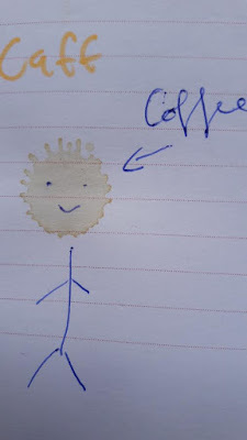 I can't caption this coffee sketch without the image exploding across the page so I'll just tell you that I made it naturally (by accident, at least the head) today in my notebook and have designated it my stand-up mascot. I've called him/her Caff (it's unisex).