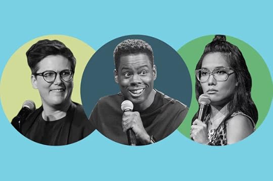 This image, the only one I could find that sort of fit Time magazine's ranking of the "10 best comedy specials" of 2018, is a little misleading. Hannah Gadsby's special was ranked top and Ali Wong's special was ranked third top. Chris Rock's special came in sixth. Yet this image puts him front and centre, like he's the main event.