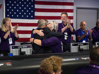 It also provides another revelation (Hidden Figures take two) into the influence of women in space exploration, with a woman being responsible for engineering and building the Cassini probe that would travel a billion or so miles from Earth and through the eye of a space needle to find its desired target and gather the information needed. We always have been good at sewing (She is pictured here hugging the project manager upon the completion of the mission). Oh and the lead scientist on the project (pictured applauding) was a woman too, so it was a regular sewing circle situation, you could say, except it was in space, the final sewing frontier, it seems.