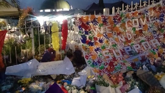There is much to be learnt from this violent act of racism and anti-Muslim aggression, not least for those of us who take it upon ourselves to try and teach others and fight for what we believe is right, as I have done for much of my adult life, if on a very small scale, and visiting a mosque for the first time last night, being warmly welcomed by several Muslim people serving us tea and snacks, inviting us to join them in prayer, has taught me that as individuals we are small indeed, as factions we are divisive, but as one people fighting with kindness for each other, for peace, for tolerance and togetherness, we are powerful and strong. As-salamu alaykum, peace be upon you and us.