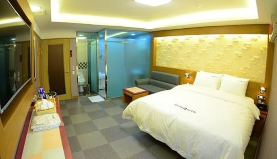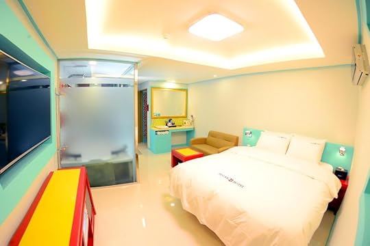 Sin embargo, lo más destacable de la ambientación real que usé, es el Sugar Hotel. Que sí, existe. Aunque entra dentro de la lista de los hoteles del amor (en los alrededores hay alguno más, pero también más notable de que son para lo que son), yo no quería que tuviera esas connotaciones en mi historia, así que me puse a buscar por otro lado; pero entonces leí varios blogs y reseñas de españoles y extranjeros que habían acabado en el Sugar Hotel por su ubicación. Más allá de destacar sus habitaciones estrambóticas y lo céntrico que quedaba, no me dio la sensación de que nadie se sintiera incómodo durante su estancia. Así que dejé que Jun se hospedara allí. Lo cierto es que me gustó mucho en un principio porque tenía mucha personalidad y daba mucho juego a la hora de interactuar con Momji y hacer bromas. Por aquí unas pocas fotos para que os hagáis una idea de a lo que me refiero con estrambótico.