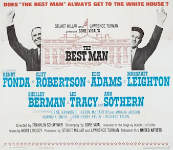 As we know, this is not always the case Nineteen sixty-eight is an election year, and if we had forgotten for even a minute, the end of the week will surely remind us. On Thursday, it's the excellent drama The Best Man (9:00 p.m., CBS), Gore Vidal's savage look at a political party coming together to nominate its presidential candidate, with an all-star cast including Henry Fonda, Cliff Robertson, Edie Adams, Margaret Leighton, Lee Tracy, Kevin McCarthy, Ann Sothern and Shelly Berman. It is, says Judith Crist, "a caustic commentary on the facts of our political life," saved from cynicism by its integrity, "for it pretends to be neither a panacea nor a speech-ridden preachment—simply a picture of practical politics." And in that sense, the movie isn't dated at all. (You can read more about it at my list of the