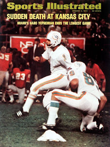 The biggest television event on Christmas Day doesn't have anything to do with Christmas, although it might have interfered with a few Christmas dinners. It takes place in Kansas City, where the Miami Dolphins are taking on the Kansas City Chiefs in the first round of the NFL playoffs.You'll remember that back in 1960 , when Christmas fell on a Sunday, the NFL moved its championship game to Monday, the legal holiday. In 1966, the next time it happened, both the NFL and AFL finished their seasons on December 18 and then had bye weeks before settling their championships the following weekend. But in 1971, the league decided to schedule a doubleheader on Christmas Day (there would be another the following day). In the first game, at 1:00 p.m. ET on CBS, the Dallas Cowboys defeat the Minnesota Vikings 20-12. But nobody remembers that game; I had to look it up myself. It's the second game, which kicks off at 4:00 p.m., that goes into the record books.