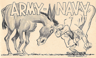 At one time it was one of the biggest football games of the year, annually attracting over 100,000 fans to Philadelphia Stadium, including, frequently, the president of the United States. Even today, regardless of the records of the two teams, it's guaranteed a national television audience, at a time when no other games are scheduled. It is, of course, the Army-Navy game, and on Saturday (12:15 p.m., NBC) they meet for the 59th time, with Army holding 29-24-4 advantage. Nowadays their fortunes rise and fall, with aspirations to appear in some of the more minor bowl games, but in 1958 the service academies, particularly the Army, still reflect the glory, and success, of the wartime teams. Army enters this year's contest with a record of 7-0-1, ranked #5 in the nation; Navy, ranked as high as #6 at one point in the season, is 6-2. (The Air Force, in case you're wondering, finishes #8 at 9-0-2, and plays on New Year's Day in the Cotton Bowl.) On this day, the Cadets come out on top, defeating the Middies 22-6 to cap off their undefeated season, and finish #3 in the nation. It is, to this date, the last undefeated Army team.In other sports news, CBS has some "ice hockey" on Saturday at 1:00 p.m., with the Boston Bruins and New York Rangers meeting at Madison Square Garden. In Sunday's NFL action, the Los Angeles Rams taken on the Chicago Cardinals (1:00 p.m., CBS), and in the NBA Game of the Week, it's the New York Knickerbockers and Philadelphia Warriors (1:30 p.m., NBC),*