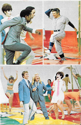 Romp!! is hosted by Ryan O'Neal and Michele Lee, and stars Jimmy Durante, Barbara Eden, James Darren, Cream, Harper's Bizarre, and Liberace, with special appearances by Sammy Davis Jr., Casey Stengel, Sonny Tufts, The Celebration, Richard Dreyfuss, Joey Bishop, and Michael Blodgett. You know it's hip; Ryan O'Neal appears in a sportcoat and turtleneck rather than a tie, and the romping takes place "in a studio equipped with a squooshy floor, the better to romp on." The stars cavort with "all sorts of bikinied and mini-skirted lovelies." It does beg the question, though, as to how you can have both Cream and Durante in the same show—I mean, I love them both; I also love enchiladas and hot fudge sundaes, but not on the same plate at the same time.