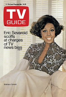 L-R: Bolger, Haley, HamiltonI know that's going to be tough to top, and to be honest I'm not sure we're going to be able to do it this week, though it's not for lack of trying. On Sunday evening at 6:00 p.m., it's NBC again, this time with the 17th annual presentation of The Wizard of Oz, which ties in nicely with a story featuring three of the movies stars, Ray Bolger (The Scarecrow), Jack Haley (The Tin Man), and Margaret Hamilton (The Wicked Witch) as they reminisce about the making of the movie, 31 years ago. What's shocking about it, in a way, is that none of them are that old—Bolger is 66, Haley and Hamilton 68—and yet, along with 83-year-old Billie Burke, who played The Good Witch, they're the only principles still living.Tuesday is St. Patrick's Day, and WPIX celebrates with four hours of coverage of New York's 208th parade (12:30 p.m.), with 120,000 marchers, clans from all of Ireland's 32 counties, and more. If, like me, you're not into that kind of thing, you could watch WABC's morning movie, The L-Shaped Room (9:30 a.m.), with an Oscar-nominated, non-singing performance from Leslie Caron. And since I just watched a YouTube clip with Ernie and Cookie Monster, you'll forgive me for mentioning Sesame Street (9:30 a.m., WPIX), with Ethel Kennedy reading a story. Later that evening, WNBC carries a special, A Choice of Destinies (7:30 p.m.), a portrait of America reflected by five recent assassinations: John and Robert Kennedy, Martin Luther King, Malcolm X, and Medgar Evers. You could also choose Julia (8:30 p.m., NBC), with star Diahann Carroll, who in this week's cover story tells Carolyn See that her success is due, in part, to being "a black woman with a white image." See asks Carroll about accusations from the black community that she's a "sellout." "Of course," she replies sharply. "What else would I be? I've sold my talents for a job I'm not particularly crazy about. Isn't that what you do? Isn't that what most people do? I've been operating in the white world for 15 years." She's worked hard to get where she has, and when asked why, she replies, "For exposure. For an audience, for a reputation, for a wider public. You can't do very much without these things. And the gamble, too. Because if the series goes a third year, there's real money in it." Yes, in 1970 it was something to be a black person succeeding in the white world. How have things changed since then, I wonder?