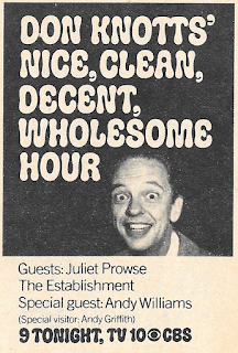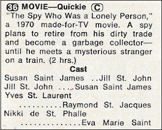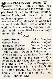I generally like to end on a light note, and this week's topic comes from a feature called "Second Look" by Scott MacDonough, which is a kind of retrospective look at shows from the last few weeks. I admit that the utility of this somewhat escapes me; after all, in this pre-VCR era, unless you catch something in reruns, what good is it to know whether or not a show was any good? It's not as if you recorded it for playback later. And if it does show in reruns, you're probably likely to have forgotten what Scott said about it, anyway.