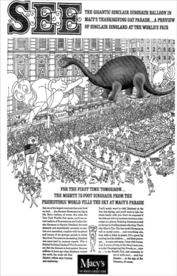 This ad for the 1954 parade is just fun, don't you think? It sums up the magic of Thanksgiving and Christmas all in one. Believe it or not, the parade was first televised in 1946; you can see that by 1954, it's become an integral part of a company's advertising strategy.
