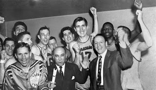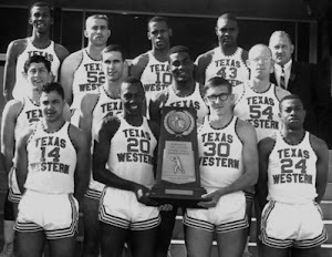 .) It's one of the most significant games ever played in college basketball, as Texas Western becomes the first team ever to win the championship with an all-black starting lineup, defeating top-ranked (and all-white) Kentucky 72-65.* Kentucky's presence in the final makes the moment even more significant; their legendary head coach, Adolph Rupp, was also a staunch segregationist who resisted efforts by the university's president to integrate the team; Kentucky wouldn't dress a black player until 1970. Don Haskins, the coach at Texas Western (today called the University of Texas at El Paso), didn't care what color his players were as long as they could play; his assistant coach said "he'd have played five kids from Mars if they were his best five players." He was immensely proud of his players, and took personal offense at any racial attacks on them; of Rupp, he would say, "I had been listening to all this damn crap out of him, and it's a wonder I didn't say something to him about it. But I didn't." I think it's safe to say that sports has never been the same since.*It was, in fact, the first time any major American sports championship had ever been contested between a team with an all-black starting lineup and a team that was all-white.