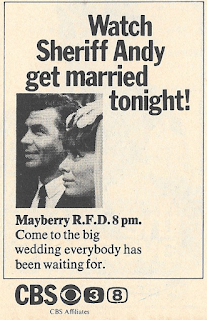 Monday belongs to CBS; first, it's Lucille Ball's new sitcom, Here's Lucy (7:30 p.m.), followed by Mayberry R.F.D. (8:00 p.m.), the reconstituted Andy Griffith Show, and while Ken Berry is the star going forward, the debut episode bids a last, long farewell to the past as Sheriff Andy finally ties the knot with Helen Crump, with Don Knotts returning as best man. I imagine a few tears were shed during that episode.Tuesday's probably the most significant night of the week, staring with ABC's breakout hit of the season, The Mod Squad (6:30 p.m.), which opens with a 90-minute "world premiere" pilot about "a trio of youthful offenders who infiltrate the crime scene." NBC has the debut of Julia (7:30 p.m.), the first weekly series to star a black woman since Beulah in the 1950s, with Diahann Carroll interviewing for a job with the "cantankerous" Dr. Chesney, played by Lloyd Nolan. Over at CBS, Doris Day makes her long-anticipated TV series debut with The Doris Day Show, which has some trouble settling on a format but still runs for five seasons; at 9:00 p.m. it's the inaugural episode of a new magazine series: 60 Minutes, with Mike Wallace and Harry Reasoner, which starts out alternating with The CBS News Hour but eventually finds a home on Sunday nights, where it remains to this day.