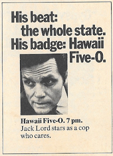 Some of you may have fond memories of Wednesday's Here Come the Brides (ABC, 6:30 p.m.), with David Soul responsible for bringing the aforementioned brides to Seattle. ay, but on Thursday (CBS, 7:00 p.m.) one of the longest-running police dramas begins its 12-season run: Hawaii Five-O, with Jack Lord (whose hair didn't move in 12 seasons either), whose beat is "the whole state" of Hawaii. And Friday sees the 90-minute The Name of the Game (7:30 p.m.), a wheel show with rotating stars Tony Franciosa, Gene Barry, and Robert Stack.Let's add to all of this some of the returning favorites. CBS brings back Lassie, The Ed Sullivan Show, Mission: Impossible, Gunsmoke, Carol Burnett, The Beverly Hillbillies, Green Acres, The Wild Wild West, The Jackie Gleason Show, My Three Sons, Hogan's Heroes, and Mannix. NBC has Get Smart, Mutual of Omaha's Wild Kingdom, Walt Disney, Bonanza, I Dream of Jeannie, Laugh-In, The Virginian, Daniel Boone, Ironside, Dragnet, and Star Trek. And ABC renews The FBI, Peyton Place, The Big Valley, The Flying Nun, Bewitched, That Girl, The Dating Game, The Newlywed Game, Lawrence Welk, and The Hollywood Palace. And that's leaving some shows out, both new and returning, for which some of you might have a great affection.