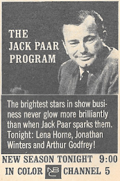 10:30 JOHNNY CARSON—Variety COLOR Guests: Bill Dana, Kaye Ballard