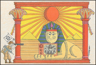 Israel watches Egypt—on television. That’s the news from Robert Musel, who reports that Egyptian television—widely considered not only the best in the Middle East, but the equal of many networks in Europe—attracts a significant number of Israeli viewers every day, since Israel doesn’t yet have its own television network. It’s a message the Israelis themselves could benefit from, according to a number of experts who say the nation has been slow to realize the propaganda value of TV. Its first prime minister, David Ben-Gurion, had felt that television had little to offer his people (they’d be “better off reading books”), until he saw a nature documentary while making a state visit to France. Ben-Gurion was fascinated by the show, which included film shot from inside a beehive, and said that “Israel had to have television like this.” He feared that, due to the country’s high taxes, only the rich would be able to afford sets, but as many a nation has discovered, the truth is that low-income groups love their television as much as anyone. But though Israel may have discovered that television isn’t all bad, it still has yet to use it to their advantage. Israel won’t begin its own broadcasts until 1968—far too late, according to Musel, who says they should have been exploiting it for years, giving its neighbors a look at what the country and its people are really like. Foreign correspondent Shelby Scates of the Seattle Post-Intelligencer tells Musel that most Arabs “had no idea what the average Israeli was like” other than the “highly-colored” accounts from Arab newspapers. The Israelis are missing the boat, says Scates—“If the Arabs could see this land of milk and honey and the people in it, they wouldn’t be so afraid.” An Israeli journalist agrees, saying that “It’s time the Arabs stopped thinking we’ve got two tails.” Television as a bringer of world peace? I think it’s naïve, but maybe, back in 1967, not so much.