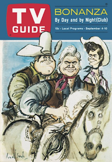 These summer issues of TV Guide, as I've noted before, are always something of a mixed bag; with most of the networks in rerun mode, there isn’t always a lot to choose from, and summer replacements are often the best bet. I’ve previously mentioned Jackie Gleason’s fill-in, Away We Go (Saturday, 6:30 p.m. CT, CBS), hosted by the unlikely combination of George Carlin and Buddy Greco,* and the Smothers Brothers’ replacement, Our Place (Sunday, 8:00 p.m., CBS), hosted by Burns and Schreiber, as well as Vic Damone, Dean Martin’s summer host (Thursday, 9:00 p.m., NBC), and the appropriately named Spotlight (Tuesday, 7:30 p.m., CBS), Red Skelton’s replacement—this week featuring British comedian Benny Hill.