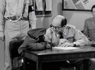 On Tuesday, The Phil Silvers Show (7:00 p.m., CBS) presents one of the greatest episodes in sitcom history, "The Court Martial," in which Bilko winds up defending a chimp that's accidentally been inducted into the Army.