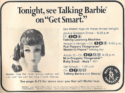 Finally, I mentioned that Christmas is just around the corner, and proof of that is a string of ads for Mattel's new toy line, which they have helpfully pointed out to parents by letting them know when their commercials can be seen on TV.