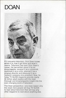 I've had numerous occasion over the years to quote from Richard K. Doan's weekly Doan Report, a valuable source not only of insider stories, but of hard news perspectives on various issues within the industry. This week, while we're still absorbing the debuts from the new season, we get to see the debut of the Doan Report itself! Doan was, in the past, the radio-TV editor of the New York Herald Tribune; now, with the Herald Tribune closed for good as of August, the newspaper industry's loss is TV Guide's gain. And what, pray tell, is the first item on the plate? The ratings for the season's new shows, of course!The first "definitive" poll of the season is in, that being the Nielsens for October 10, and while the week's top show was a returning favorite—Green Acres—first among the newcomers is ABC's WWII series The Rat Patrol. As for the biggest disappointment, at least in terms of potential, that belongs to the network's Stage 67, which was highly touted at the start of the season but "was so scorned by critic and viewer alike" that it's likely going to be replaced by a Wednesday night movie. The jury's still out on where Stage 67 winds up, and whether it survives as a weekly series or an occasional special. But since a Wednesday night movie requires more than just an hour, that's going to necessitate moving the week's second airing of Peyton Place. Where to? At this point, probably in place of The Man Who Never Was, although Shane and Hawk, two hour-long dramas, are in big trouble already. As for the year's biggest bomb, The Tammy Grimes Show, well, that's already a scratch.