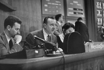 Cronkite and crew during 1952 coverage On CBS (beginning at 9:00 p.m. ET), Walter Cronkite heads a team of veterans from the 1952 election, including Edward R. Murrow, Douglas Edwards, Charles Collingwood, Eric Sevaried, Ron Cochran, and others. Included is the Univac computer, "the electronic brain that calculates and projects the trends," first introduced with "some success" in 1952. The network plans cutaways to New York, Chicago, Los Angeles, and Washington D.C. Over at NBC (9:30 p.m.), Dave Garroway, "who can be counted on to remain cool amidst the most hectic proceedings," will anchor the coverage, aided by John Cameron Swayze, Roy Neal, David Brinkley, Joseph McCaffrey, Ray Scherer, and others. They'll have remotes from Republican and Democratic national headquarters. Both CBS and NBC will break for local updates for the last five minutes of each half-hour.