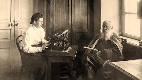 Tolstoy's daughter taking dictation from her father, a year before his death, 1909Tolstoy's research into the War of 1812 was massive. He had an entire bookcase devoted to books on the war; "He had to know how General Koutousoff mounted his horse, what kind of hands Napoleon had, and he studied the histories of Mikhailovsky, Danilevsky, Thiers, Dumas and many others"; he travelled to the battlefields to see for himself where the armies were stationed. Upon his return, he said, "I think I am going to write a description of the battle at Borodino that has never before been written."