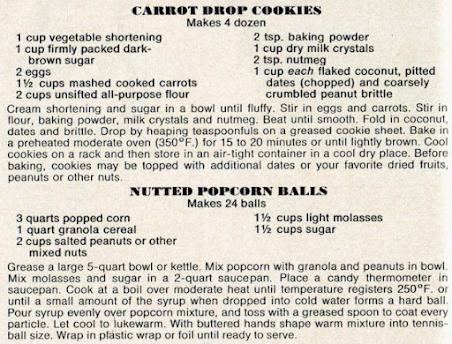 We haven't done a recipe for awhile, and there are plenty of them in this week's issue courtesy of food consultant Helen Feingold, designed to remind you that just because you're eating healthier, that doesn't mean you have to give up that great flavor. Let's try some Carrot Drop Cookies, followed by Nutted Popcorn Balls. As always, if you try any of these out, let us know!