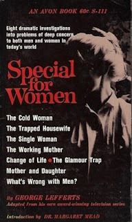 The cover of George Lefferts'collection of scripts from the showWe begin with NBC's series of occasional afternoon programs, Special For Woman, which returns on Tuesday for a six-week primetime run (10:00 p.m.). "Each taped drama," according to the program description, "deals with a problem faced by women in America," and concludes with a brief discussion led by NBC news reporter Pauline Frederick.* This week's episode, entitled "The Single Woman," presents the dilemma of Elisabeth Greenway (Barbara Baxley), who "has reached an age where she knows she ought to get married." She has a beau (Michael Tolan) ready and willing to tie the knot, but "Elisabeth just can't see her way clear to committing herself to him—or any man—for life." Although it's not mentioned in the description, she's also being wooed by a married man, played by Patrick O'Neal. Following the play, Frederick interviews psychiatrist Louis English.