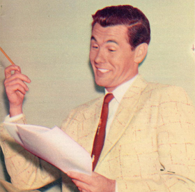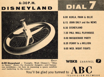 Wednesday's Disneyland (6:30 p.m., ABC) takes a trip to Tomorrowland, where Wernher von Braun is one of the scientists discussing the challenges ahead for putting a "Man in Space," and what man's first spaceflight will look like. That's followed by Pall Mall Playhouse (7:30 p.m., ABC), with John Newland—whom we'll know better from hosting One Step Beyond—starring as a tenderfoot finding out that life in the West isn't what he expected. And at 8:30 p.m., I've Got a Secret (CBS) gives us a second look this week at Audie Murphy, who has a secret for the panel. Don McNeill sits in for Garry Moore, who returns to IGAS as well as his own show next week. Thursday afternoon's Early Show presents "Tomorrow's Man" (4:00 p.m., CBS), with Pat O'Brien as a football coach* who must decide whether to win a game, or teach his son (John Derek) a lesson. I've got an idea: why not teach him how to win? Problem solved! Later, it's a rare comedy on Climax! (7:30 p.m., CBS), but for good reason: the star of "Public Pigeon No. 1" is Red Skelton, who plays a sucker hired by conmen to sell stock in a phony uranium company. That's followed at 8:30 p.m. by Four Star Playhouse, and this week the star is Charles Boyer as a mysterious stranger who arrives at the front door of a young woman whose husband has just escaped from prison; Beverly Garland co-stars.