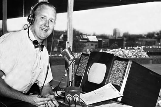 I'm not going to ruin the suspense for you, though, so as you watch the broadcast, notice how different things are: not only the uniforms and the style of play, but the number of cameras used and the angles, the graphics (or lack of same), and the style of announcing, courtesy of two of the best around, Cubs legend Jack Brickhouse (pictured above) and famed voice of the Chicago Black Hawks, Lloyd Pettit. Contrast it with what you're apt to see on a given broadcast today, and see what you think.