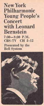 On Tuesday, Leonard Bernstein and the New York Philharmonic return with the second of this season's Young People's Concerts (7:30 p.m., CBS), illustrating how an orchestra performs a piece in the way that its composer wanted it played. I suppose a show like this would be considered too advanced for young people to follow today, but I enjoyed them. Later, a CBS News Special (10:00 p.m.) asks a question we'll all be asking soon enough: "Where We Stand in Vietnam." Included in the special is the result of a public-opinion survey that aims, according to CBS News president Fred Friendly, "to learn, as definitely as possible, exactly what the American public believes about war and peace in Vietnam." If you're looking for something strictly entertaining, go with one of the all-time greats, All About Eve (9:00 p.m., KCRA in Sacramento), with Bette Davis, Anne Baxter, George Sanders, Celeste Holm, Marilyn Monroe, Gary Merrill, and Thelma Ritter.
