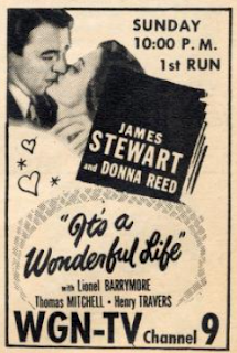 Finally, here's an early television appearance of It's a Wonderful Life (its Chicago TV debut, and on Christmas night to boot), being marketed not as a Christmas movie, but as a romantic drama.