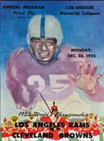 Monday afternoon football? Well, why not? Sports has not yet intruded on Christmas Day itself, which means that the NFL Championship game between the defending champion Cleveland Browns (yes, you read that right) and the Los Angeles Rams. (2:45 p.m., NBC) It's the first time the championship game has been telecast on NBC; the four prior title games had been shown on DuMont. Playing before a championship-record crowd of nearly 90,000, the Browns repeat as champs, defeating the Rams 38-14. It was the third NFL championship won by the Browns in the decade of the 1950s; they'd win again in 1964, and haven't won since. The Rams, for their part, would not return to the title game until 1980, and didn't win it until 2000.