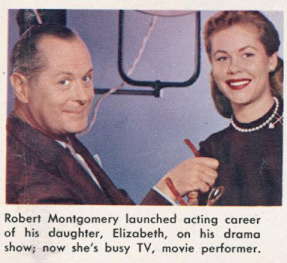 Most successful, I think it's safe to say, was Elizabeth Montgomery, daughter of Robert Montgomery and future star of Bewitched. Although her dad was a movie star and television pioneer, many of you will think of him as Liz's father, rather than the other way around. She got her start as part of her dad's summer repertory company, but now she's setting out on her own. I wonder if anyone anticipated the success she'd attain?