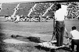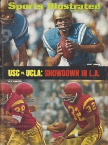 On the topic of football, I'll admit to being puzzled by this description of Saturday's game between UCLA and USC (1:30 p.m., ABC). According to the listings, the teams may be playing for "the highest stakes ever in a college game." Now, it's true that this is a very big game; UCLA is undefeated and ranked #1 in the country, while once-beaten USC is ranked #4; the winner of the game will go to the Rose Bowl; and the teams' best players (quarterback Gary Beban of UCLA and running back O.J. Simpson of USC) are the two favorites to win the Heisman Trophy as player of the year. There's also the unofficial championship of Los Angeles on the line.And yet: "the highest stakes ever"? You'll pardon the confusion, but it was almost one year ago to the day (November 19) that Notre Dame played Michigan State in what was being called the "Game of the Century." Notre Dame was undefeated and ranked #1, while Michigan State was undefeated and ranked #2. And while it's true that neither team could go to a bowl game (Michigan State was ineligible, having gone to the Rose Bowl the previous season, while Notre Dame didn't play in bowls at the time), the stakes were much higher: the national championship, which would undoubtedly go to the winner of the game. The number of press credentials issued for the game was higher than for any game ever played at the time (and would go on to include the first few Super Bowls), and an unprecedented demand to watch the game led ABC to tape-delay it to any part of the country that didn't get to see it live. (It also had the largest audience ever to see a college football game on TV.) As I wrote about here , the game changed college football forever, and as big a game as USC-UCLA was, I can't countenance putting it in quite the same category.*