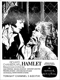 A couple of additional programs to report on this week: On Tuesday, the Hallmark Hall of Fame opens its 20th season with "Hamlet," starring Richard Chamberlain, (8:00 p.m., NBC) You might not think of Dr. Kildare as your first choice to play the role, but Chamberlain won raves in Britain last year when he became the first American Hamlet since John Barrymore. He's backed by a heavyweight supporting cast, including Michael Redgrave as Polonius, Margaret Leighton as Gertrude, John Gielgud as the Ghost, and Martin Shaw as Horatio. As