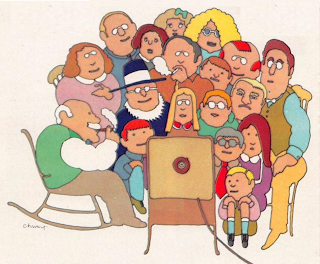 The TV Guide writer knows what such family gatherings can be like; the motley collection of relatives, the "opinionated loudmouth determined to impress one and all with his garbled misinformation, the in-laws and the "incessant yakking and bragging of birdbrains on her side of the family who make more money than I do," and the like. The secret, Frank has discovered, is to "create a community of interest that will keep them from each others' throats." And the way that you do that is by turning on the television.