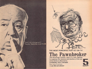 There's more to Saturday than football, though. There are, for example, two absolutely powerhouse movies on in the late night slot. At 10:30 p.m. on KGO, it's the unforgettable Hitchcock shocker Psycho, with Anthony Perkins and Janet Leigh. An hour later, on KPIX, it's "the most powerful film yet on TV," The Pawnbroker, starring Rod Steiger. To have two great movies like these on local television—well, that's what TV used to be like. And to have them on at nearly the same time is what VCRs were made for. But there's more! Earlier in the evening, KOVR is showing The Magnificent Seven (6:30 p.m.), with a magnificent cast headed by Yul Brynner, Steve McQueen, and Eli Wallach. What a night for classic movie lovers—and you didn't even need TCM to achieve it. On Sunday, Debbie Reynolds features in her first special, "And Debbie Makes Six!" (8:00 p.m., ABC), with five fabulous guest stars: Bob Hope (confirming my suspicion that Hope appears in every variety special that's ever appeared on television), Jim Nabors, Bobby Darin, Frank Gorshin, and Donald O'Connor (who co-starred with Debbie in Singin' in the Rain). That's a pretty good lineup, even if it does pre-empt The FBI. And we can't forget Ed Sullivan this week (8:00 p.m., CBS); his guests are Eddie Albert; George Hamilton who does a song-and-dance number; Diana Ross and the Supremes; and the Temptations; Flip Wilson; George Carlin; Apache dancers Evon and Astor; and the Muppets. On film: Rex Harrison in a scene from Dr. Doolittle.