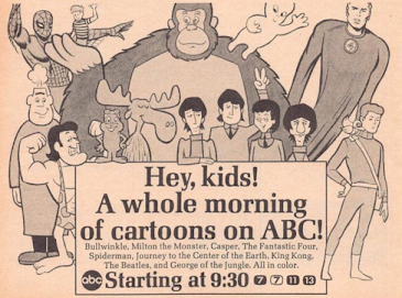 On Friday, it's ABC's annual day-after-Thanksgiving Cartoon Festival, running between 9:30 a.m. and 2:00 p.m. It's one of the things that I miss most about Thanksgiving week, even though I might not have watched any of these cartoons; there was something special about seeing Saturday morning cartoons on Friday that reminded you that this was a bonus day, an extra Saturday if you will, on top of everything that happened yesterday. Of course, one reason why it's not done today is because the networks don't show cartoons on Saturday morning anymore. As a matter of fact, I don't think they show anything on Saturday morning anymore; they leave it to the local stations and their lame E/I programs. Ah, another golden memory gone; I guess college football serves the same function today. In primetime, NBC pre-empts Star Trek (note to programming: in the future, don't pre-empt the program on the cover of this week's issue) for a repeat broadcast of Singer Presents Herb Alpert & the Tijuana Brass (8:30 p.m.), which the ads promote as "the most popular hour special in TV history!" Now, whether they can actually prove that statement or not is, I suppose, questionable, but there's no question that Alpert & Co. were as popular as any group around back in the late 1960s. It's also a great time to be selling sewing machines.l l l