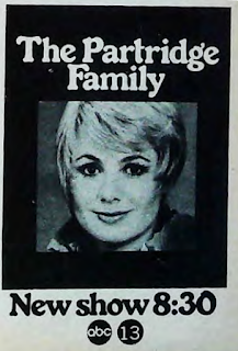 Come Friday, and it's time for ABC to pair the returning Brady Bunch with The Partridge Family (8:30 p.m.), starring Shirley Jones, David Cassidy, Susan Dey, Suzanne Crough, Jeremy Gelbwaks, and Danny Bonaduce—oh, and Dave Madden, who keeps things from getting too sugary. Tonight Harry Morgan plays the heavy, which must have been a nice change from being Jack Webb's sidekick on Dragnet. (96 episodes, eight albums)There's one other new series I forgot to mention earlier, one that's had a fair amount of success. It's called Monday Night Football, and this week it's the second-ever MNF game, featuring the defending Super Bowl champion Kansas City Chiefs and the Baltimore Colts. (9:00 p.m.) The Chiefs win the game, 44-24; the Colts, however, wind up winning the Super Bowl. (719 episodes—er, games—and counting)